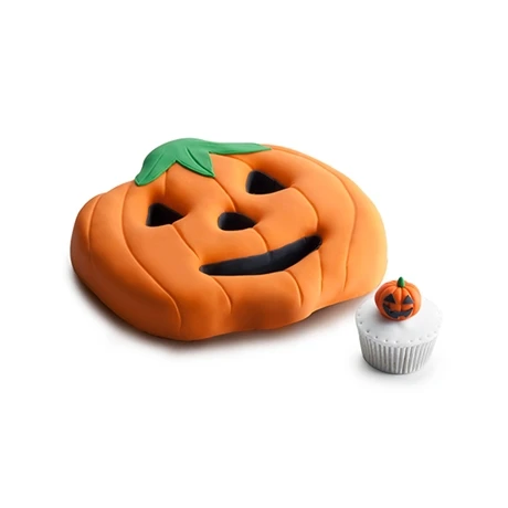 Ce moule de 30 x 17 x 3,6 cm est embossé pour laisser apparaitre le visage de la citrouille au démoulage.